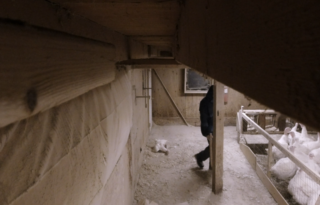 Le résultat : des bâtiments sordides où les animaux, sans contact avec l’extérieur, sont entassés par milliers pour y vivre des vies de misère avant d’être envoyés à l’abattoir. Des employés obligés de masturber des dindons pour que la reproduction se fasse plus rapidement et fiablement, et soumis à des cadences de plus en plus intenses. Des consommateur·ices qui se font mentir éhontément tous les jours par le biais de campagnes de marketing en déconnexion totale avec la réalité. Tout le monde y perd, mais l’horreur ne fait que s’accélérer.