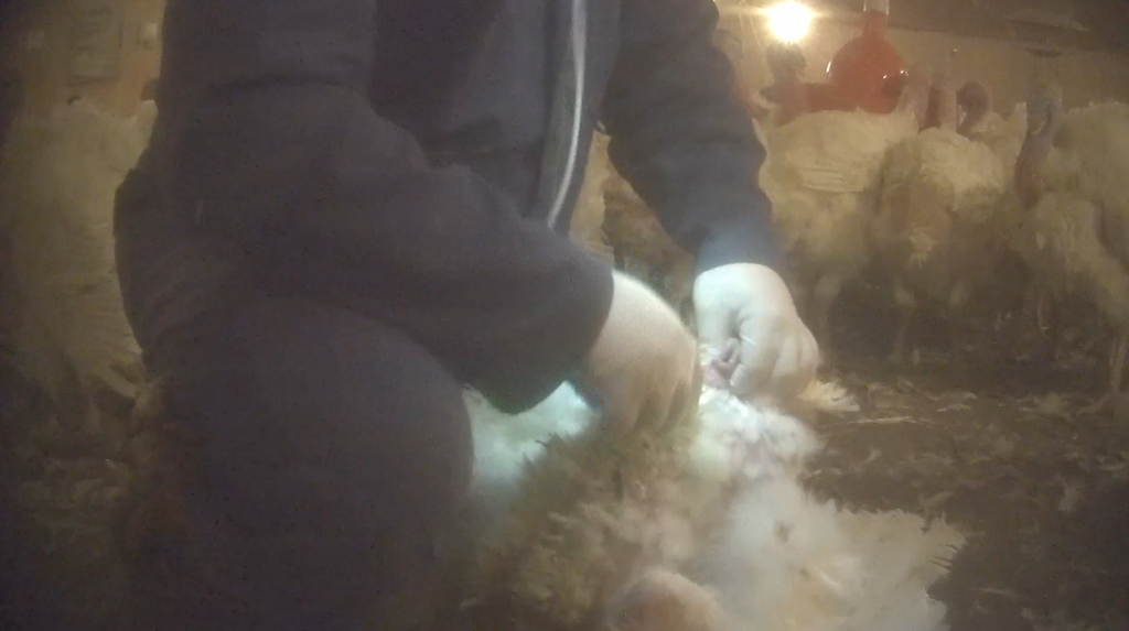Un dindon est frappé avec un bâton à plusieurs reprises pour le tuer, puis laissé pour mort alors qu’il bouge encore.